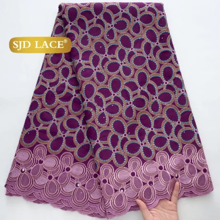 SJD LACE Swiss Voile African Cotton Lace Fabric 2025 High Quality 5 Yards Nigerian Cotton Lace for Sewing Women Party Dress 4460