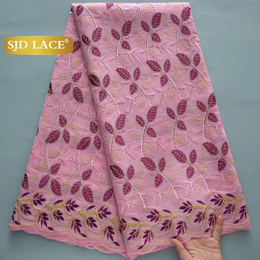 SJD LACE Swiss Voile African Cotton Lace Fabric 2025 High Quality 5 Yards Nigerian Cotton Lace for Sewing Women Party Dress 4460